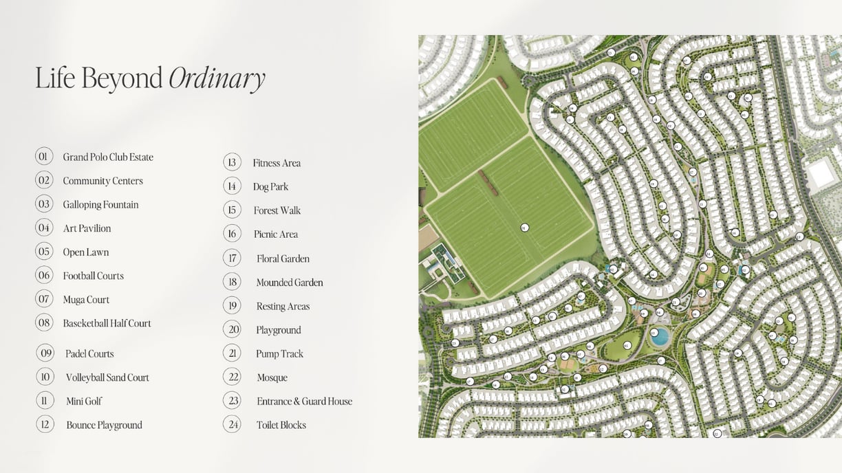 Experience refined living at the Grand Polo Club & Resort, an exclusive residential enclave by Emaar Developers. Nestled in the heart of Dubai’s most prestigious residential area, this luxurious community offers an unmatched lifestyle surrounded by lush greenery, world-class polo fields, and elite amenities. Located near the serene Dubai Hills and Dubai Harbour Creek, Grand Polo Club & Resort effortlessly connects you to destinations like Downtown Dubai, Dubai Marina, and Emaar Harbour. Choose from elegantly designed villas and townhouses, including our signature Polo Homes, The Polo Townhouses, and the refined Polo Residences.